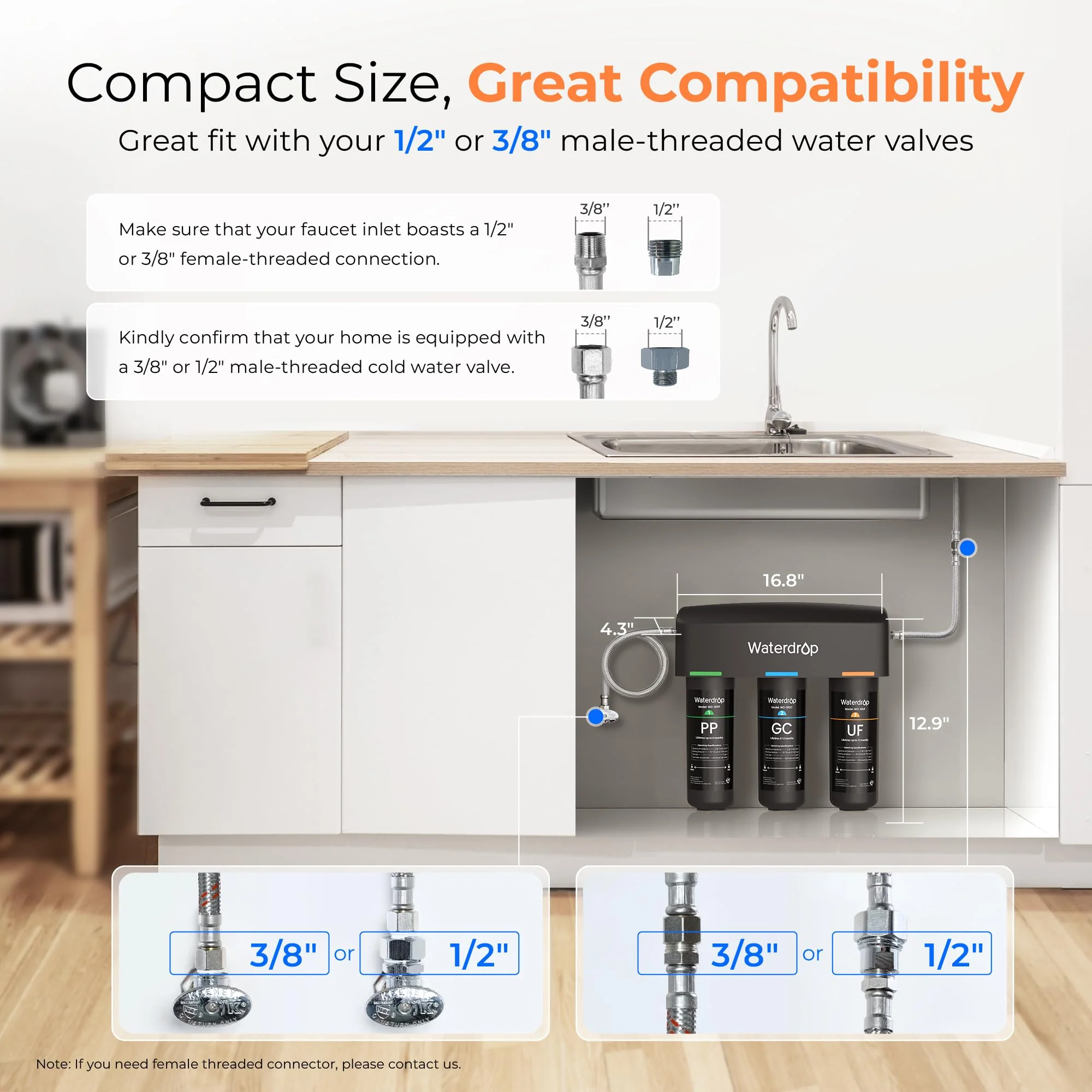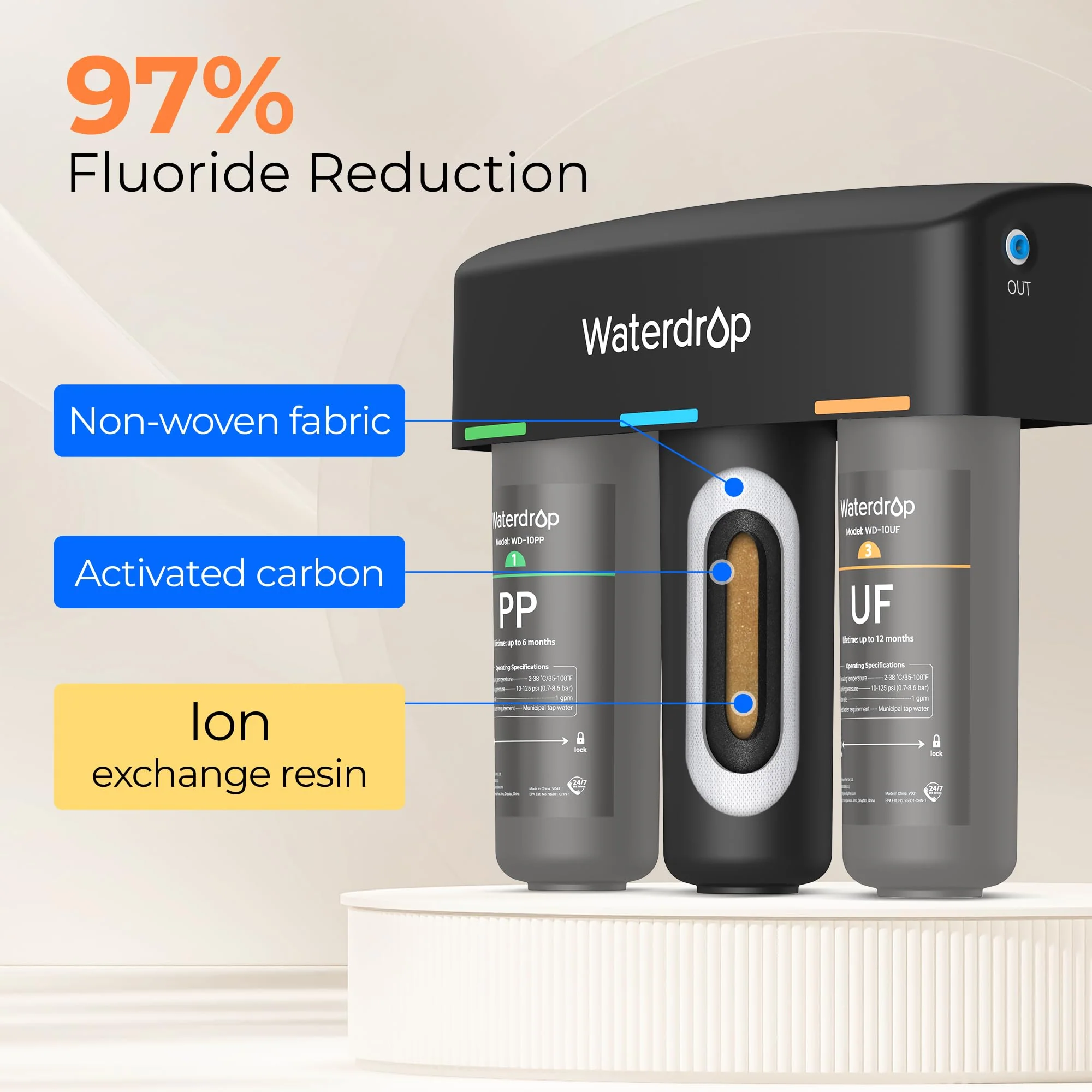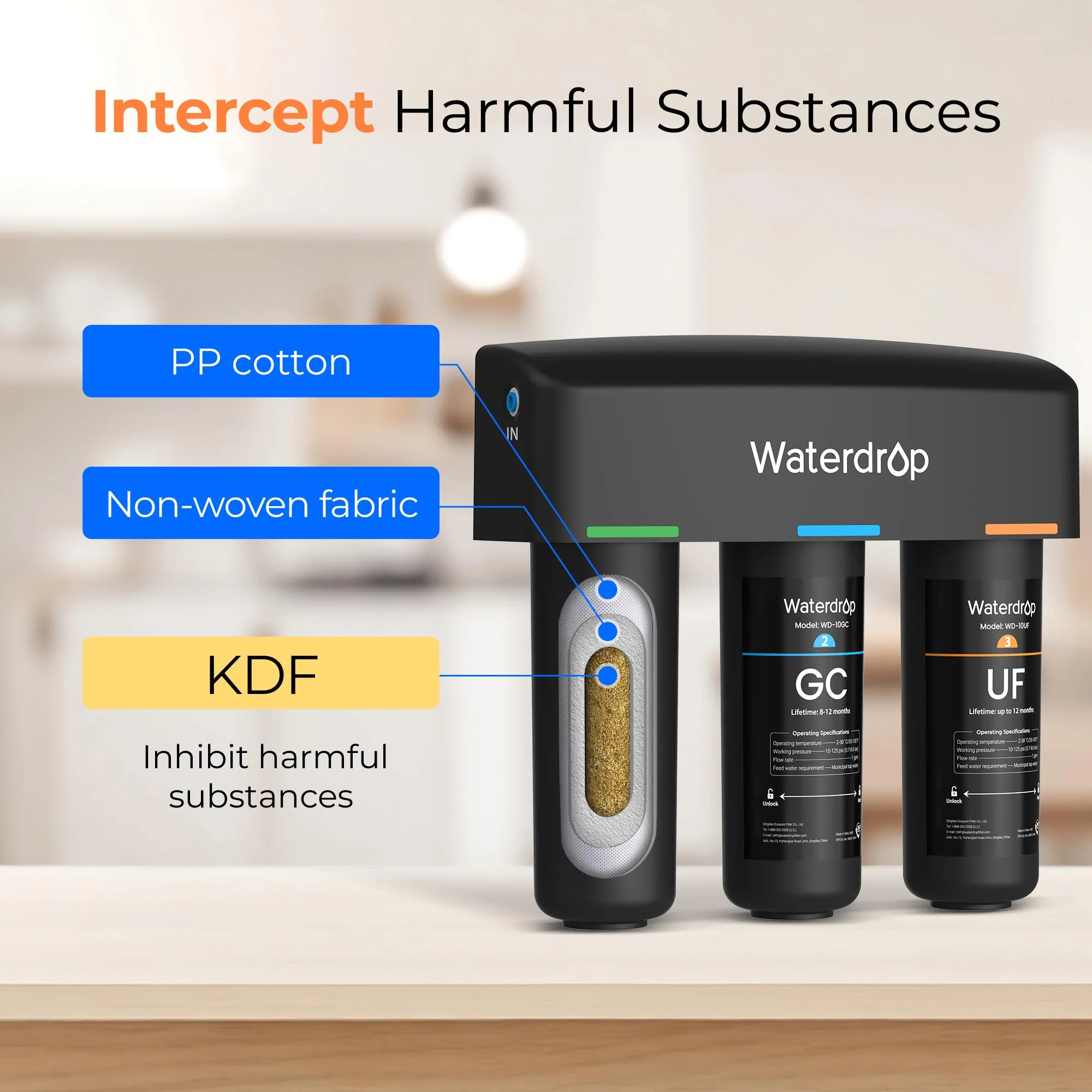 3-stage Ultra Filtration Under Sink Water Filter System Waterdrop TSA-UF