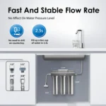 - [Faster water flow and easy installation] The stable flow rate can get as high as 1.59 GPM. You can connect the system directly to your home faucet without drilling a hole on the countertop.