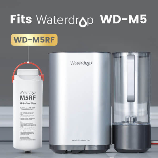 - Waterdrop M5 countertop RO system provides stable filtration performance with one year-long service life and up to 550 gallons of water. Easy to switch a new filter in 3 second.