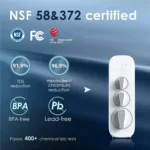- [NSF Certified performance] The system is certified against NSF 58 for TDS reduction, NSF 372 certified for lead-free material. Using reverse osmosis filtration technology with a filtration accuracy of 0. 0001μm, the system can effectively reduce most contaminants.