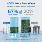 - [2:1 Pure to Drain Ratio] The RO water filter boasts an impressive 2:1 purified water ratio, producing 400% more pure water compared to traditional systems. This not only saves you money but also promotes sustainability by reducing water waste.