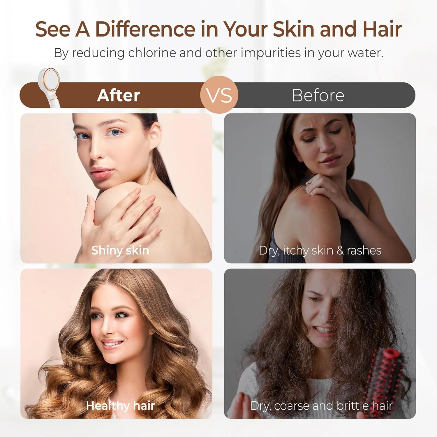 - [Soft Water for Healthier Hair and Skin] Enhance your shower routine with the Waterdrop shower head filter system. Our high-quality carbon filter, made with premium carbon fiber and high-precision PP cotton, effectively intercepts chlorine, rust, and other impurities. Enjoy softer water that alleviates the irritation caused by hard water on your skin and hair.