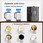 - [Convenient Heating Options]: This countertop reverse osmosis system offers 6 common temperature settings and 2 heating modes. Heat water directly to your desired temperature or boil first and cool to your preferred setting. Ideal for coffee, tea, or baby formula. Note: Don’t use the glass pitcher on a stovetop or microwave.
