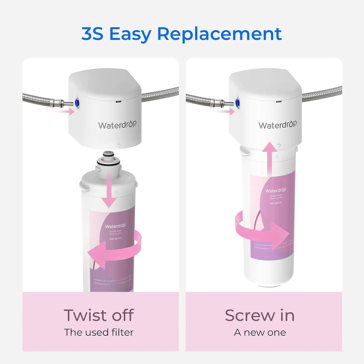 Waterdrop Water Filter Replacement BFU2F – Soften Skin & Hair, Purify Water