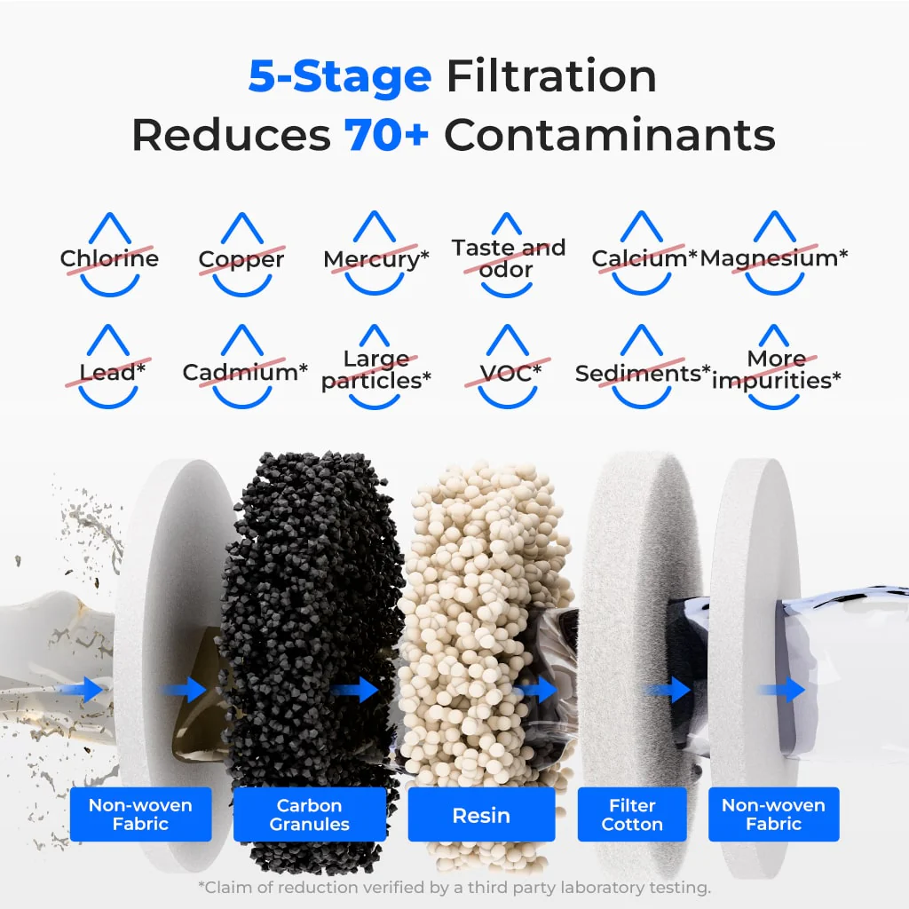 - 70+ Contaminants Reduced: This countertop water filter system provides cleaner, fresher water with 5-stage filtration designed to reduce 70+ contaminants, including chlorine, copper, taste and odor, and large particles. It also helps minimize calcium, magnesium, lead, cadmium, sediments, and VOCs. Independently tested by a third-party lab, it is designed to deliver a better hydration experience every time.