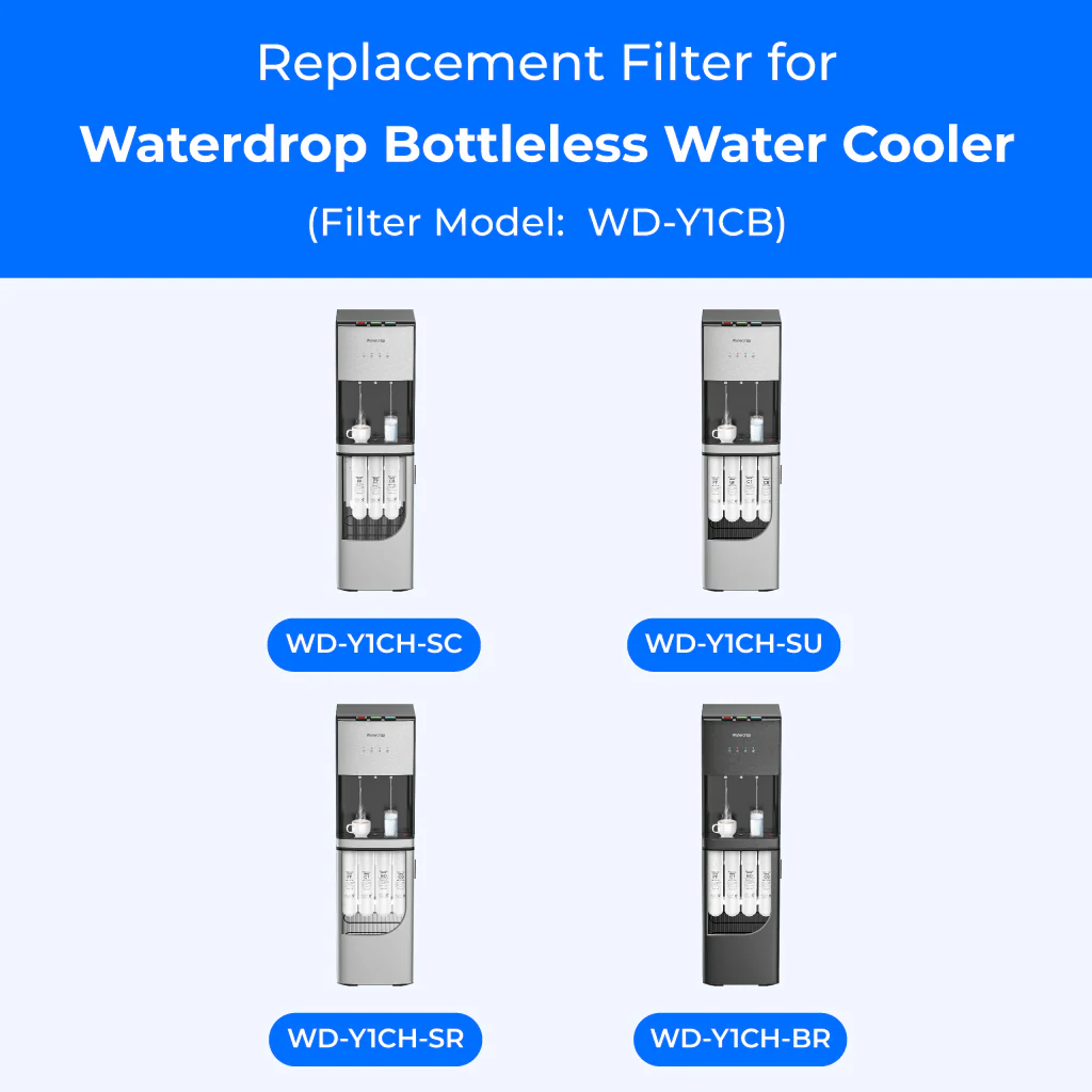Compatible models: This replacement filter is specially designed for Waterdrop WD-Y1CH-SC, WD-Y1CH-SU WD-Y1CH-SR, and WD-Y1CH-BR Bottleless Water Coolers.